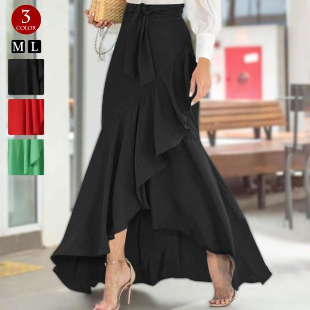 ■マーメイドラインがきれいなロングスカート。 ■ふわっと広がる裾が脚を細く見せてくれる♪ ■薄手で柔らかく、伸縮性なし、透け感なし。 ■ウエストは後ろ部分がゴムになっており、前部分で縛って調節するタイプ。 ■これ1着でお洒落にまとめて華やかさも演出◎ ■ダンススカートやパーティーなど色々な用途でお使いいただける1枚です♪ |