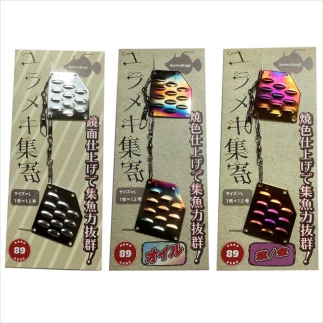 特徴: 集寄表面の凸凹加工と鏡面仕上げ、焼き色仕上げで集寄を揺らすと乱反射しカワハギを魅了し寄せつけます。