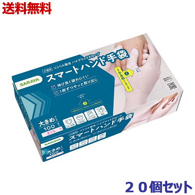 送料無料の20個セット サラヤ スマートハンド手袋 大きめサイズ さくら色 100枚入 ※取寄商品