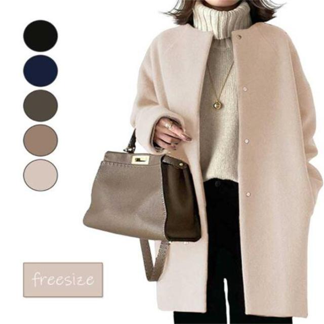 【送料無料】ウールライク ノーカラー ロングコート 秋 冬 春 ロング ジャケット アウター レディース コート ライトダウン 大きいサイズ カジュアル 体型カバー オーバーサイズ 保温 防寒 おしゃれ