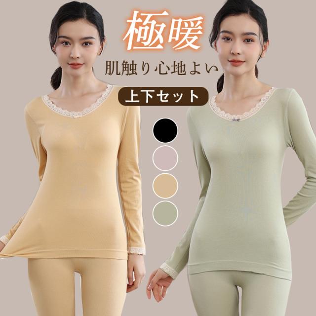 防寒インナー 防寒インナーセット インナーウエア レディース 2点セット 長袖 裏ボア 裏起毛インナー 発熱インナー 極暖 アンダ
