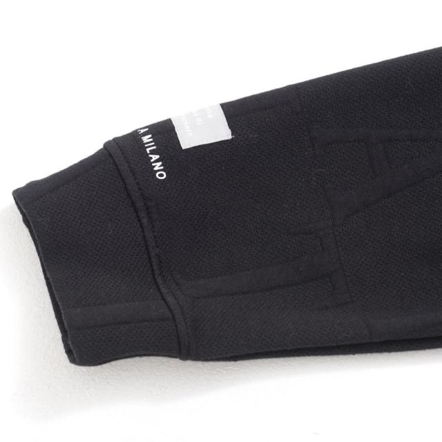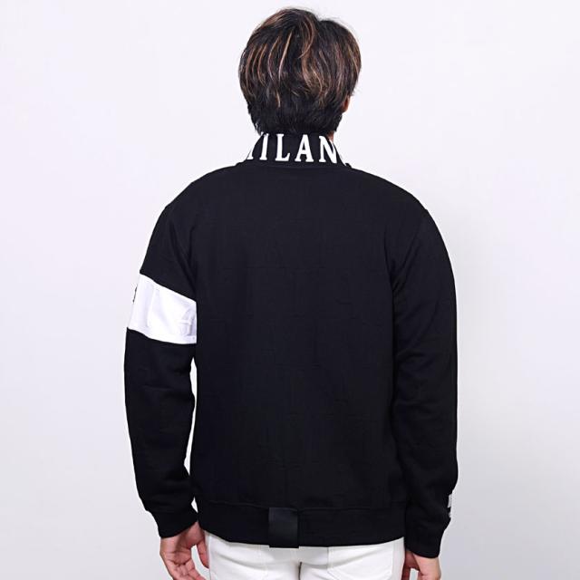 襟後ろ部分にはラメ加工を施した「MILANO」ワッペンを配置し、印象的なバックスタイルを演出。