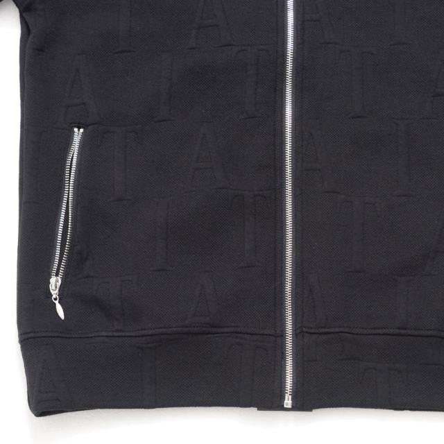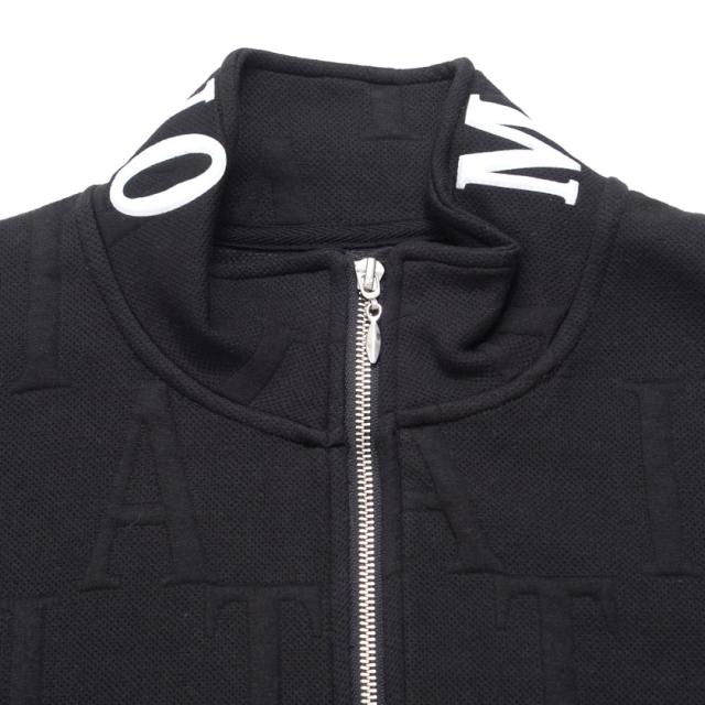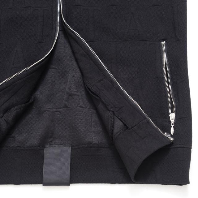 全体に「ITA」の文字を凹凸感のあるジャガード織りでデザインした遊び心をくすぐる総柄ブルゾン。