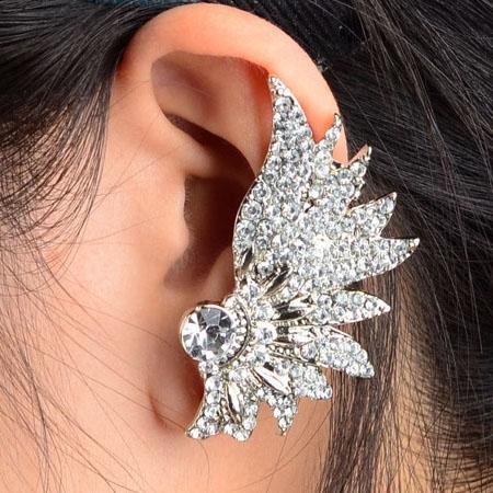 ルシファーイヤーカフ クリスタル キラキラ イヤーカフ イヤークリップ イヤーフック レディース 結婚式 入学式 卒業式 個性的 耳飾り イヤーラップ イヤリング ラインストーン 大人 羽 ウイング 翼 オススメ ノンホールピアス 揺れる 女子人気 ノーホールピアス 耳にかける