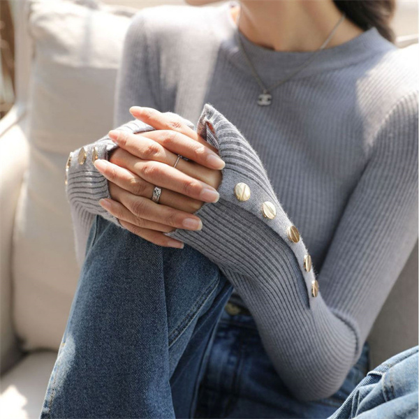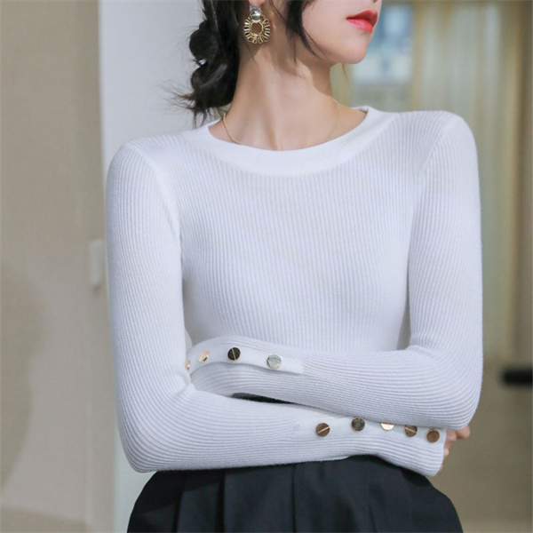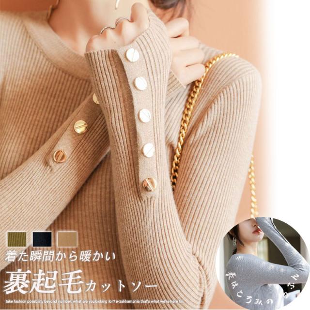 トップス リブカットソー 長袖 レディース インナー ボートネック 袖ボタン止め レイヤード 重ね着 秋 冬 おしゃれ プレゼント 伸縮性 通勤 OL