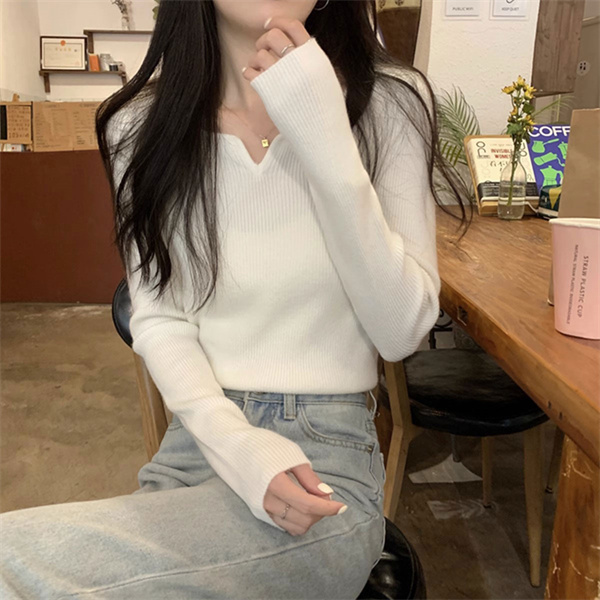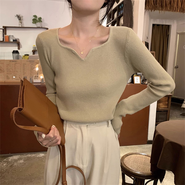 ポイント超超祭 トップス リブカットソー レディース 長袖 vネック インナー レイヤード 重ね着 レディース 秋 冬 おしゃれ プレゼント 伸縮性 通勤 OL