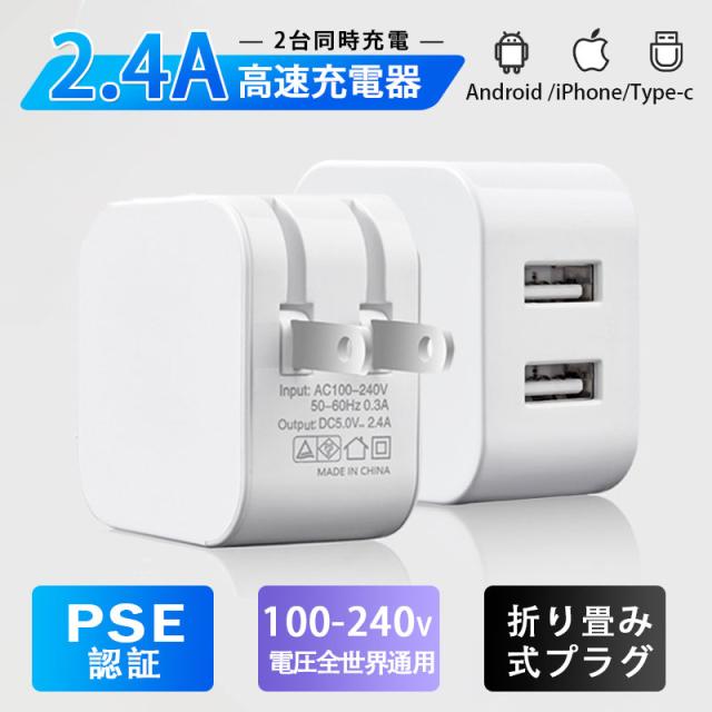 メーカー希望小売価格: 2,199円即納!ACアダプター スマホ充電器 iPhone USB 急速充電器 2.4A 充電器 2ポート スマホ USB充電器 チャージャー コ