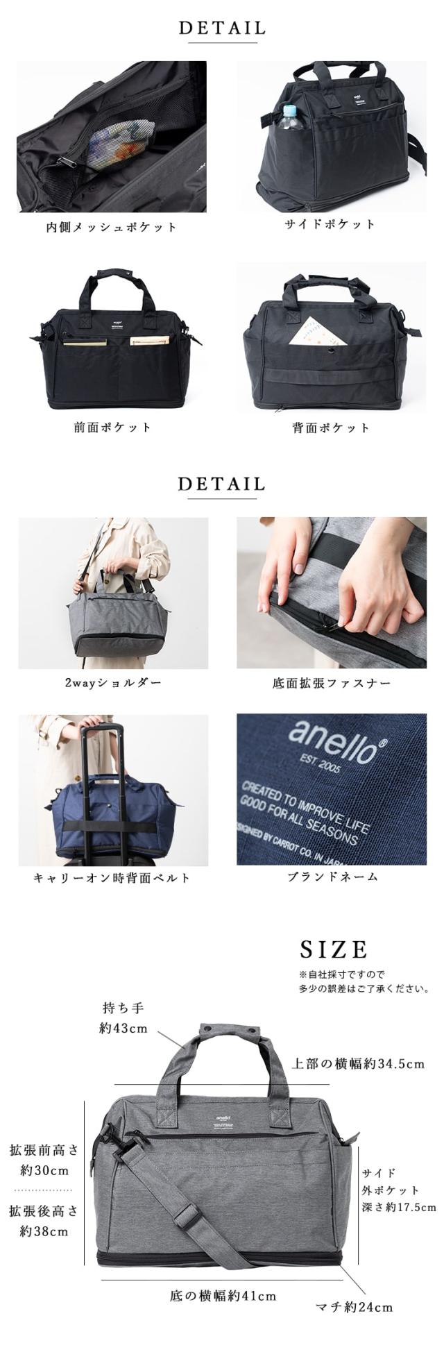 ボストンバッグ レディース anello アネロ ブランド 大容量 拡張 2way 旅行 1泊 2泊 3泊 ナイロン リップストップ生地 丈夫 大きめ がま口 口金 修学旅行 ゴルフ 軽量 かわいい おしゃれ キャリーオン メンズ ジム プレゼント ギフト