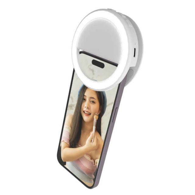 エレコム ELECOM LED リングライト 直径9cm クリップ式 3段階調光 ライト 3色モード USB充電式 自撮りライト ホワイト DE-L04WH