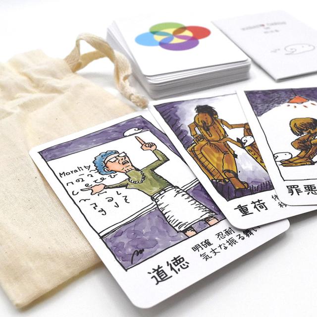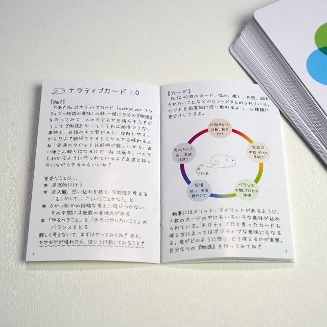 自分自身の悩みや問題を引いたカードのイラストやキーワードに結びつけて物語を語るためのカード。よりよい未来に向けたあなただけの物語を紡いでください。