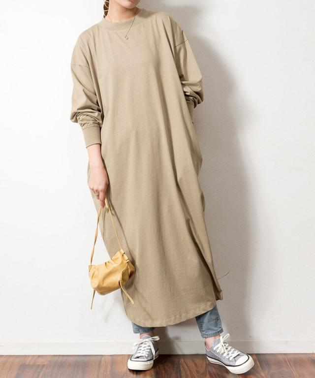 アットワン(atONE)/ワンピース 長袖 tシャツ ロング マキシ丈 ゆったり 大きめサイズ オーバーサイズ