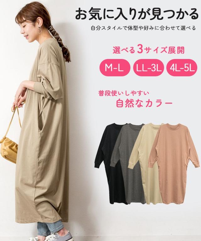 ワンピース 長袖 tシャツ ロング マキシ丈 ゆったり 大きめサイズ オーバーサイズ