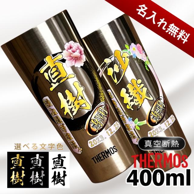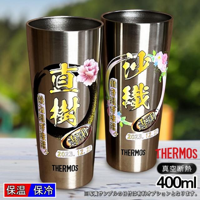 タンブラー サーモス ペア 名入れ プレゼント 真空断熱 保温 保冷 ステンレス 名前入り プリント 印刷 グラス コップ 父の日 母の日 還暦祝い 退職 誕生日 結婚祝い 記念品 敬老の日 カラー ネーム入れ 男性 女性 バースデー ギフト 400 ml JDI-400P 背景/イラスト入り PI13