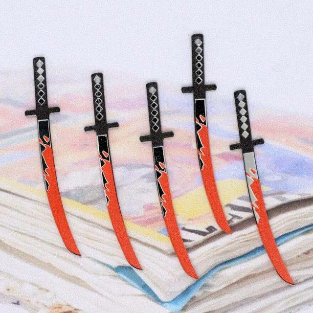 チャームやストラップ、ペンダントやキーホルダーにできるように丸い穴の開いたプラスチック製の血液が付いた日本刀や剣をモチーフにした不気味なDIY用クラフトパーツ。