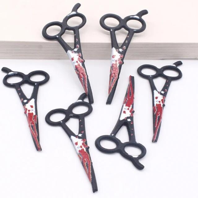 プラスチック製の血が付いたハサミをモチーフにした不気味なDIY用クラフトパーツ。