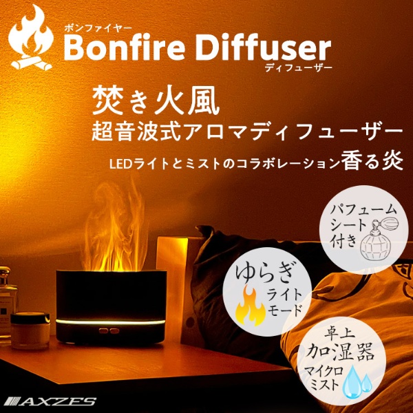 アロマディフューザー 焚き火風 フェイク炎 加湿器 超音波式 AXZES 三金商事 Mitsukin AXS-BD01