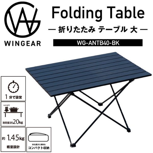 [予約]アルミロールテーブル 大 WINGEAR 三金商事 Mitsukin WG-ANTB40-BK