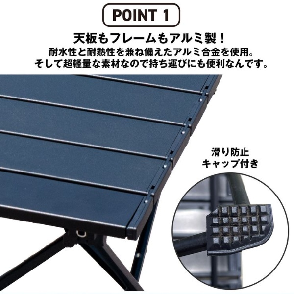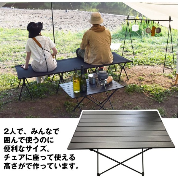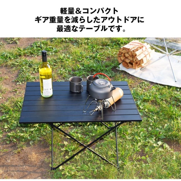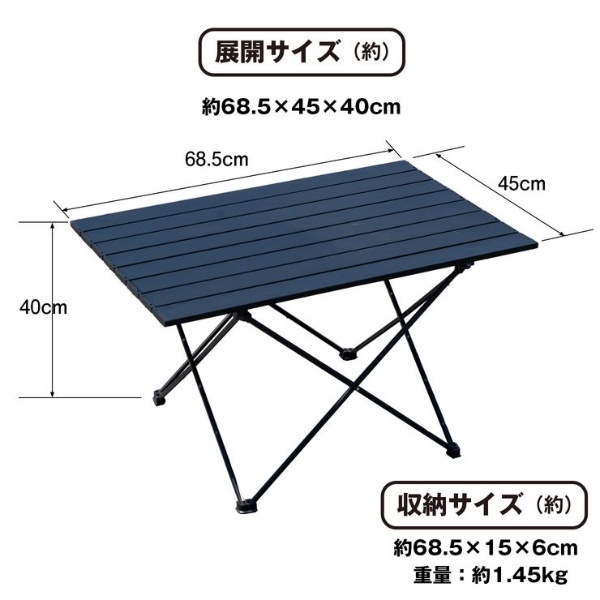 ロールテーブル 大 ■本体サイズ/使用時(約):W685×D455×H400mm ■本体サイズ/収納時(約):685×150×60mm ■本体重量(約):1.45kg ■素材:アルミニウム ■耐荷重(約):20kg ■カラー:ブラック ■商品内容:本体、収納袋、取扱説明書 ※記載は商品仕様の一部です。仕様説明不足等の理由での返品はできません。特に適合等は必ずご確認ください。