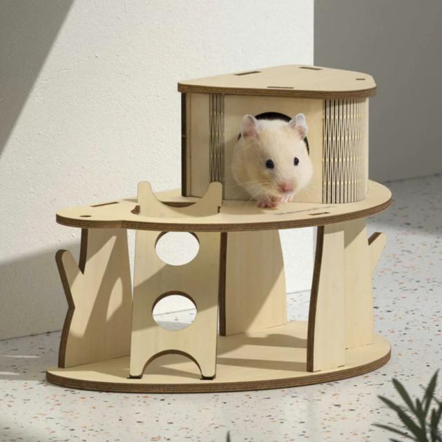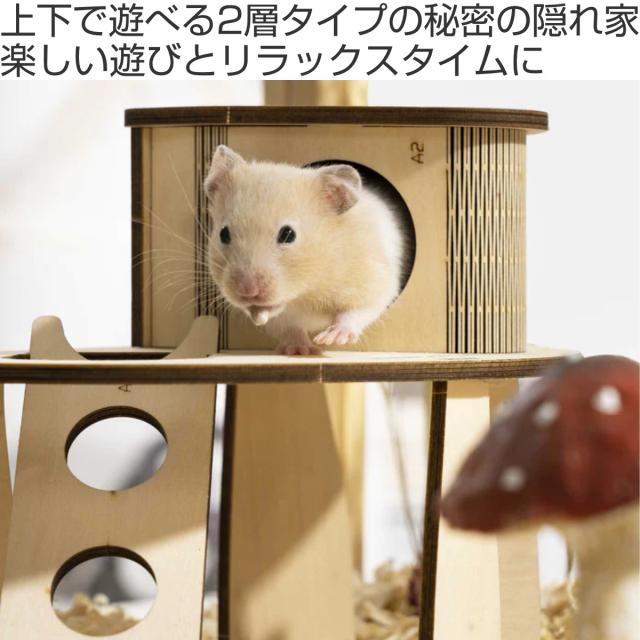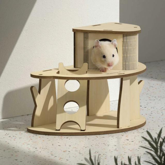 ハムスターの習性にピッタリな隠れ家です。ワンフロアの天井が少し高いゆったり2層タイプです。ペットに優しい厳選された樺合板から丁寧に手作りされており、天然の木の香りがペットを惹きつけます。