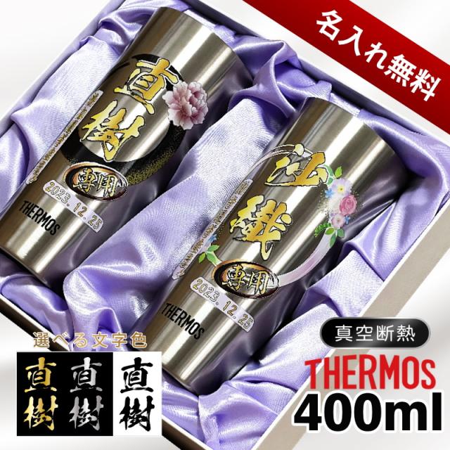【化粧箱入り】 タンブラー サーモス ペア 名入れ プレゼント 真空断熱 保温 保冷 ステンレス 名前入り プリント 印刷 グラス コップ おしゃれ ビールグラス 父の日 母の日 還暦祝い 誕生日 カラー 男性 女性 バースデー ギフト 400ml JDI-400 セット 背景/イラスト入り PI62