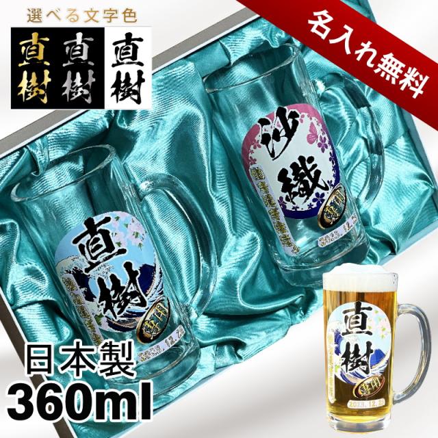 【化粧箱入り】 ビールジョッキ ペア 名入れ プレゼント 名前入り プリント 印刷 グラス コップ ビアグラス おしゃれ ビールグラス 父の日 母の日 還暦祝い 誕生日 結婚祝い カラー 男性 女性 ジョッキ ギフト 360 ml ビアジョッキ セット 背景/イラスト入り PI41