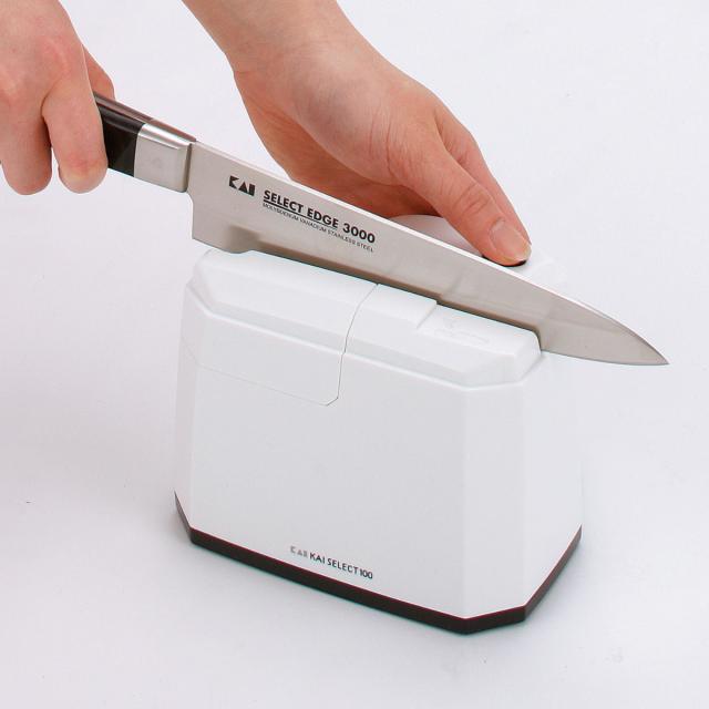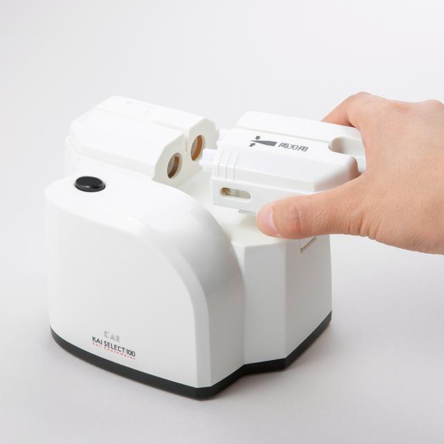 包丁研ぎ 電動 SELECT100 ワンストロークシャープナー 貝印 ( セレクト100 包丁研ぎ器 シャープナー 電動シャープナー 砥石カートリッジ付き 研ぎ器 電動式 電動包丁研ぎ器 包丁 片刃包丁 両刃包丁 包丁用研ぎ器 )