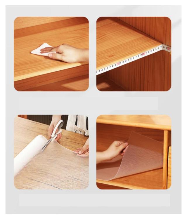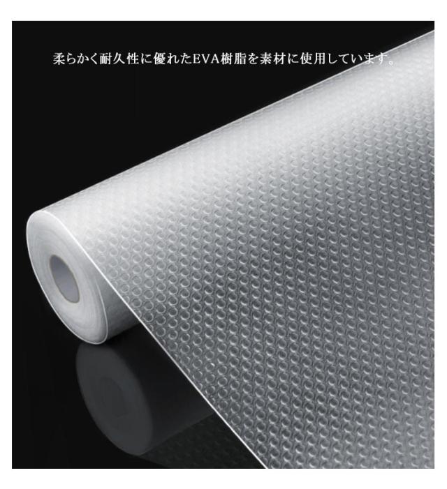 | ・幅広で使いやすい食器棚シート ・食器棚をはじめ、本棚、飾り棚、引き出し、化粧台などの敷物やテーブルセンター、花瓶敷きとして幅広くご使用いただけるシートです。 ・柔らかく耐久性に優れたEVA樹脂を素材に使用しています。 ・程よい厚みのあるシートだから食器を衝撃から守ります。 ・抗菌、防カビ加工を施しているので、清潔にお使いいただけます。 ・裏面は滑りにくい素材のため、食器の出し入れの際にシートがズレるのを予防できます。 ・また使用したい棚の幅に合わせて、自由にカットできます。 ・シート自体が透明なので、下の棚板がそのまま見えて食器棚の見た目を損なわないのもうれしいですね。 | |