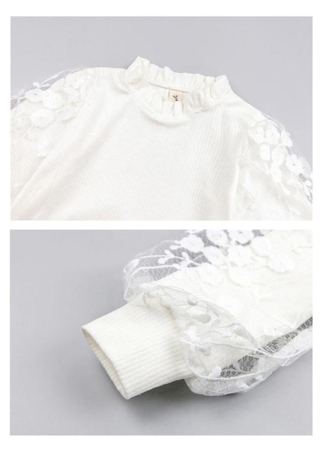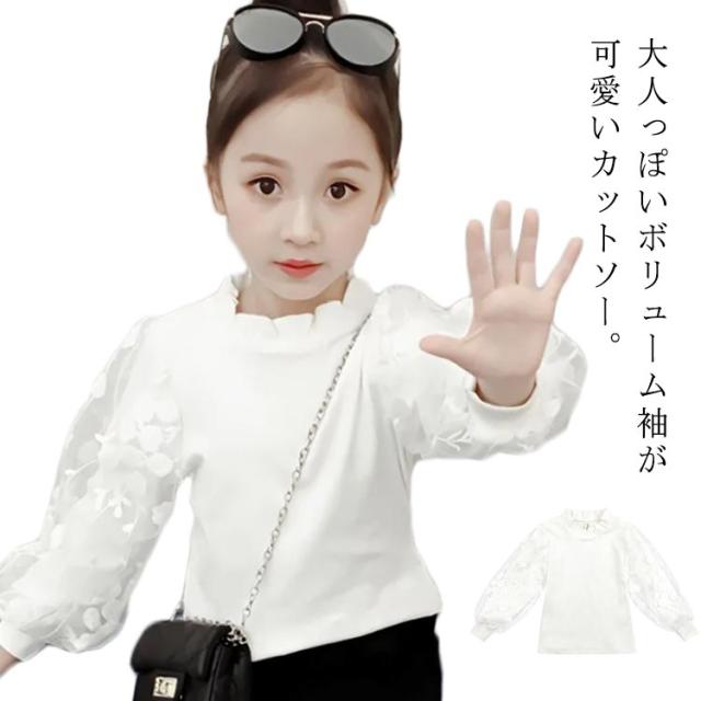 女の子 ブラウス ロンT 長袖Tシャツ キッズ 子供服 バルーンスリーブ 可愛い カットソー フリル 裏起毛 秋冬 白 トップス トップス 長袖 袖レース 春秋 冬服 あったか ジュニア 大きいサイズ フォーマル 発表会 通園 通学 プレゼント ギフト 送料無料