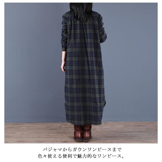 | 定番人気のきれいめチェック柄ロングシャツワンピース 丈感・サイズ感がよく動きやすく、生地が柔らかで気持ち良いです。 しっかりした作りで毛玉も出来ず、ヒップがスッポリ隠れて暖かい。 ゆったりめのつくりなので妊婦さんにもおススメ! 流行りも関係なくずっと着れるデザインで長年対応のお役立ちアイテムです。 パジャマからガウンワンピースまで色々使える便利で魅力的なワンピース。 | |