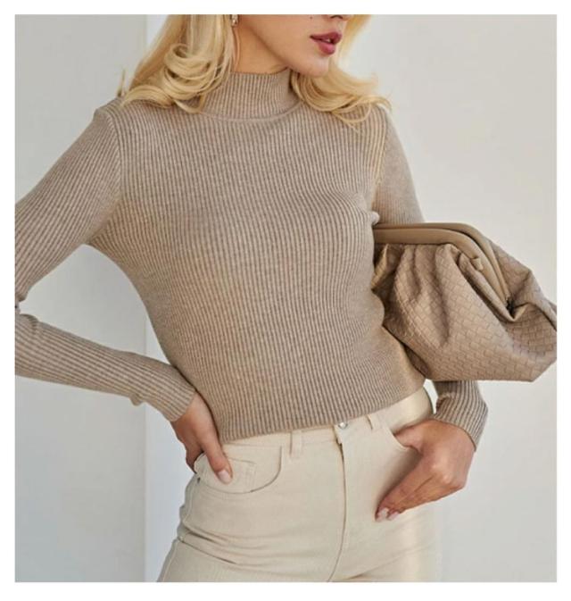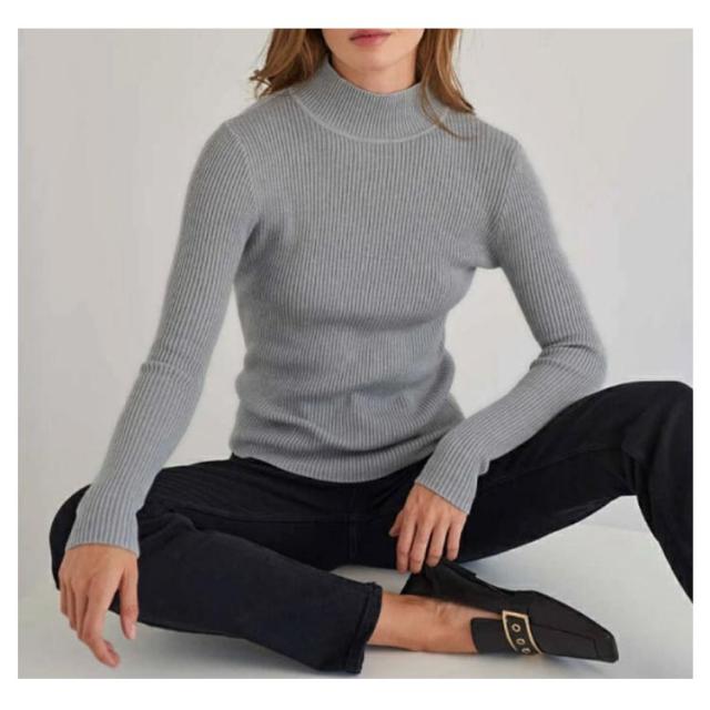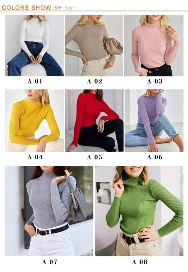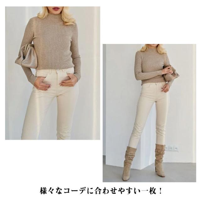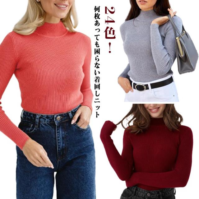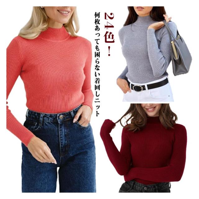ニットセーター 長袖 レディース リブプチハイネック プチタートルネック トップス セーター リブ プチハイネック リブニット プチタートルネック トップス セーター リブ ハイネック 伸縮性抜群 超伸び 暖か 送料無料