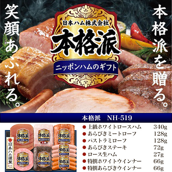 日本ハム ギフト 7種詰め合わせ 本格派 2025年 お中元 冬 贈答用 お返し 内祝い ウインナー ハム 焼豚 ミートローフ ロースハム 特選 ウインナー NH-519 食べ比べ おつまみ ニッポンハム 送料無料 クール【冷蔵配送】熨斗対応