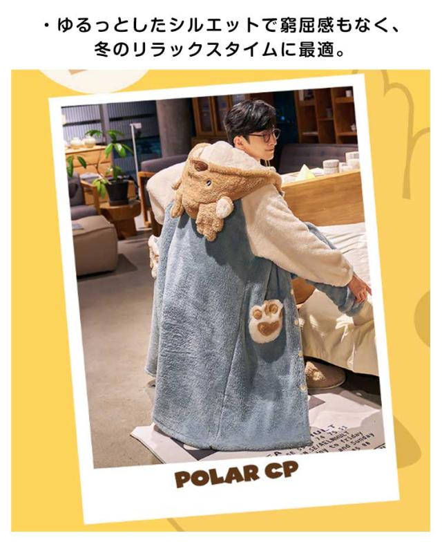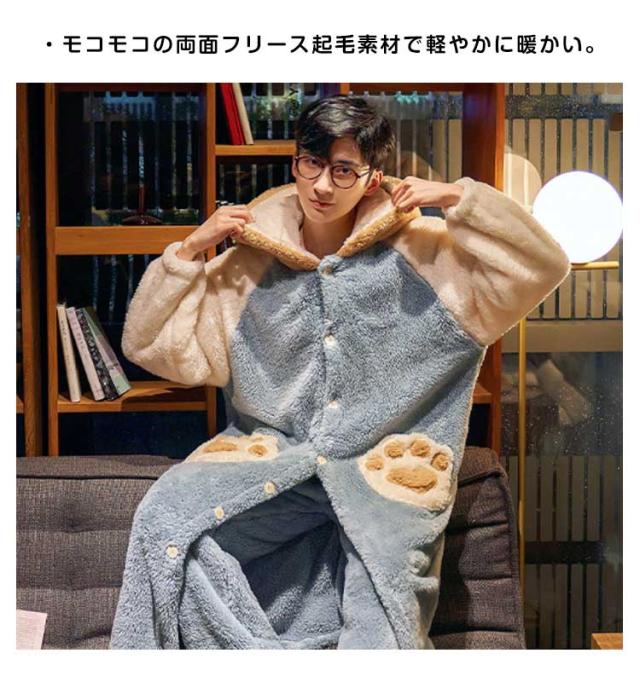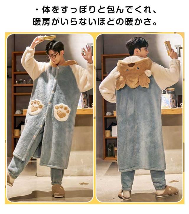 ルームウェア もこもこ メンズ 上下セット 着る毛布 ロング カーディガン ロングパンツ ナイトガウン ふわふわ 前開き 部屋着 外出 フード付き 長袖 ナイトウェア 寝巻き あったかグッズ 暖かい 厚手 保温 テレワーク 在宅 大きいサイズ 秋 冬