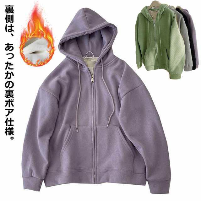 裏ボア ボア パーカー レディース ジップアップパーカー ジップパーカー スウェット スエット ルームウェア ワンマイルウェア あったか 暖か 羽織り 秋冬 カジュアル プチプラ 20代 30代 40代 送料無料