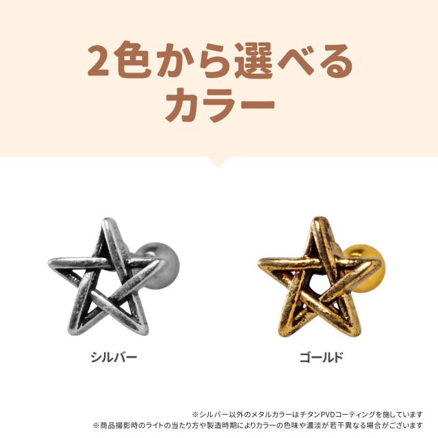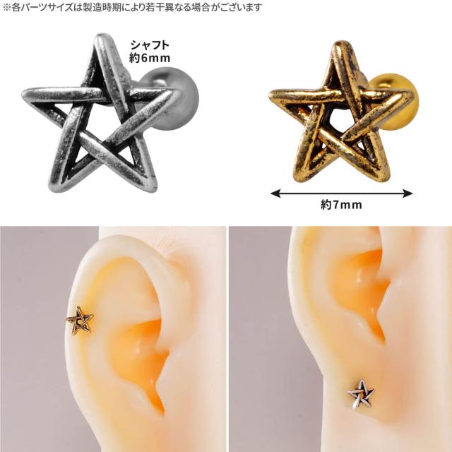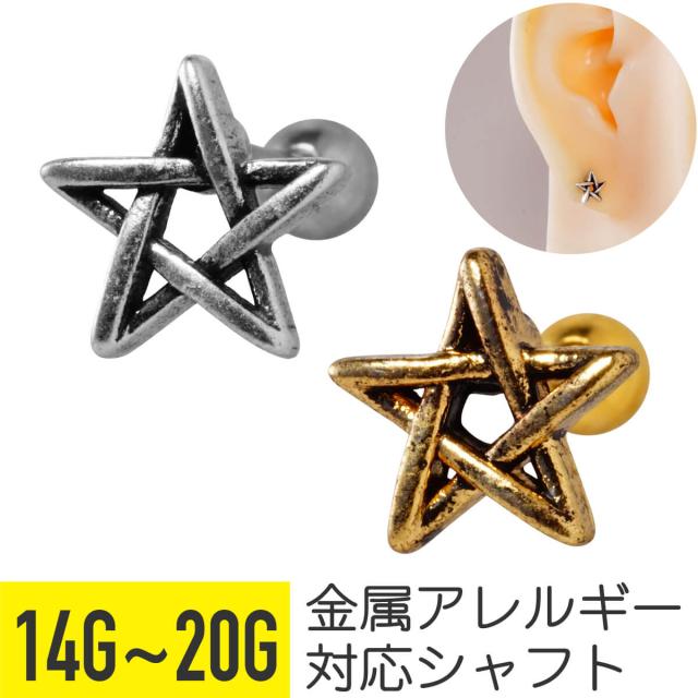 アンティーク風 スター 五芒星 ストレートバーベル 14G 16G 18G 20G サージカルステンレス ヘリックス 軟骨ピアス ボディピアス 星