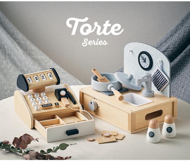 おままごと ままごと ミニキッチン 7点セット おままごとセット ままごとセット おままごとキッチン おしゃれ ごっこ遊びトイ 木製 おもちゃ 調理器具 調味料 コンパクト Torte(トルテ) 完成品 STマーク付き