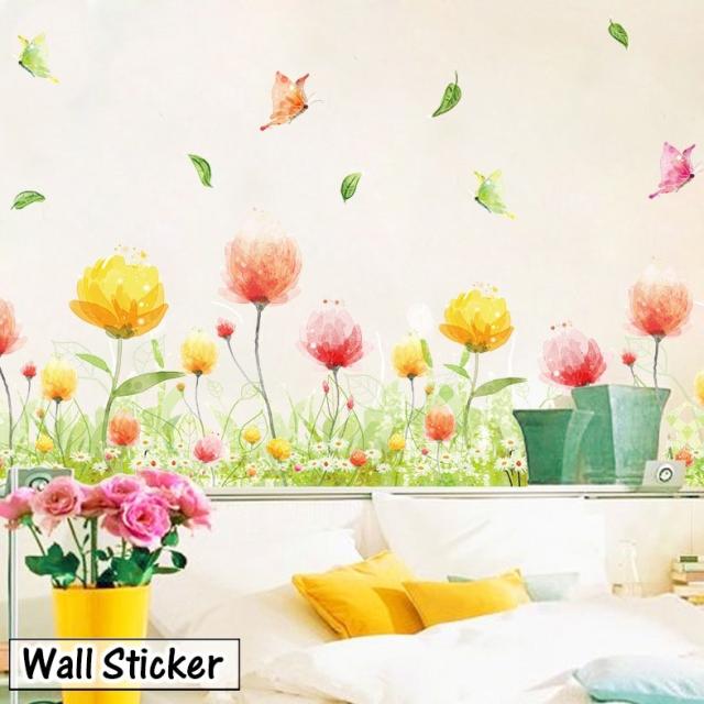 ウォールステッカー ウォールシール 壁用ステッカー 壁紙シール フラワー お花畑 チョウチョ 蝶々 ちょうちょ バタフライ カラ