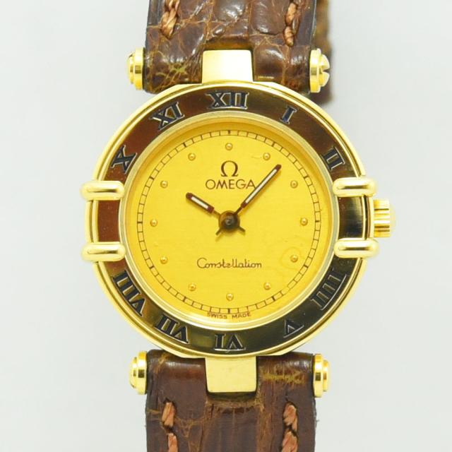 オメガ 中古 レディース OMEGA コンステレーション クォーツ YG イエローゴールド 750 ゴールド レザー 軽仕上げ