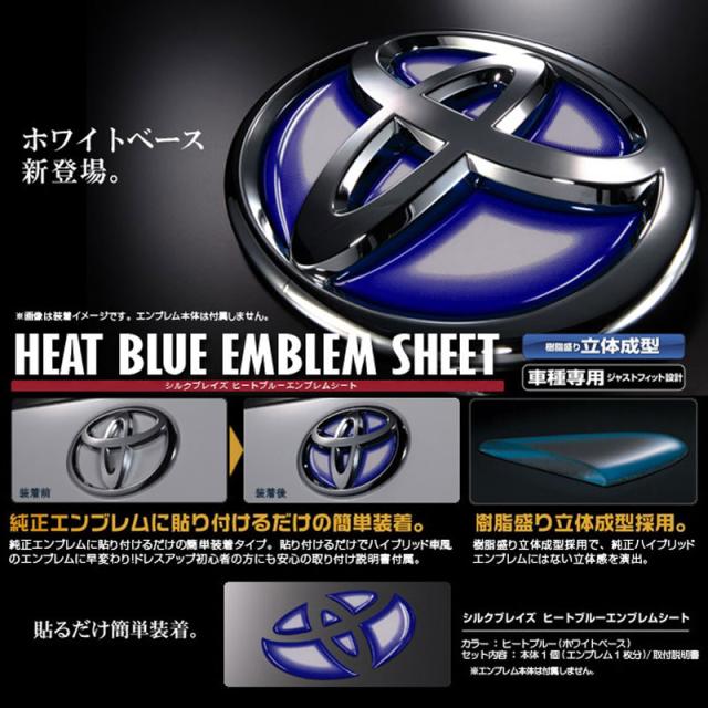 ヒートブルーエンブレムシート ホワイトベース ハイエース200系ワイド/ウイッシュ20系等 対応品番/T14 リア用 シルクブレイズ HBO-T14WH