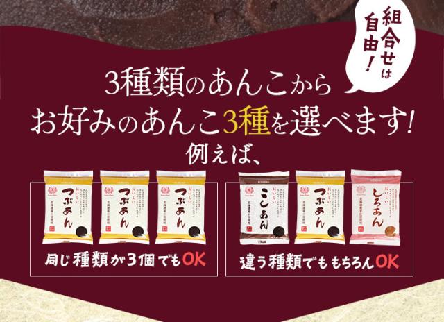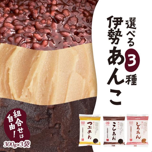 【内容量】つぶあん 300g、こしあん 300g、しろあん 300gの内いずれか3種