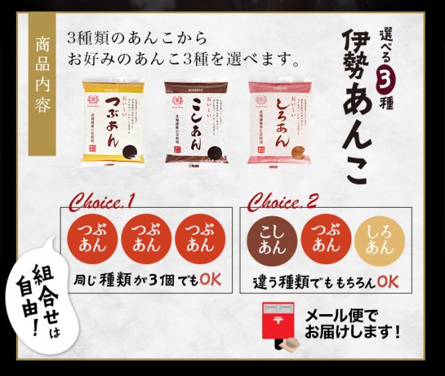 伊勢 あんこ 3個セット つぶあん こしあん しろあん 3種から選べる 餅 和菓子