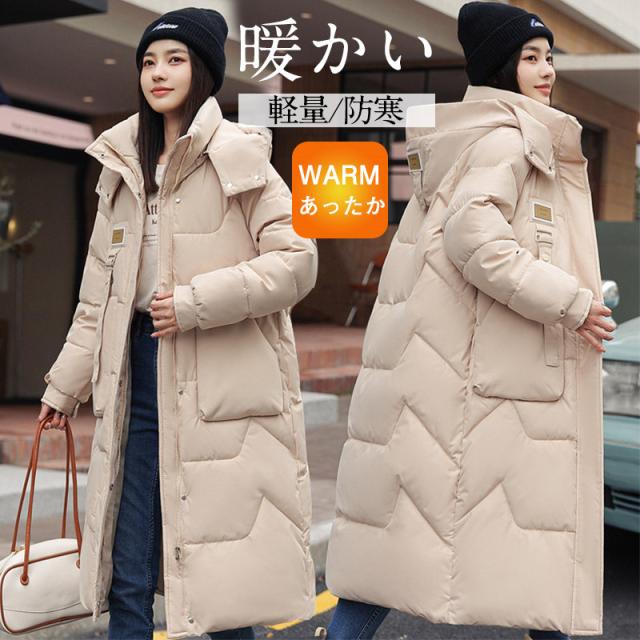 ダウンジャケット レディース 中綿コート フード付き ロング丈 アウター ダウンコート 秋冬 防寒 防風 厚手 暖かい 軽量 おし
