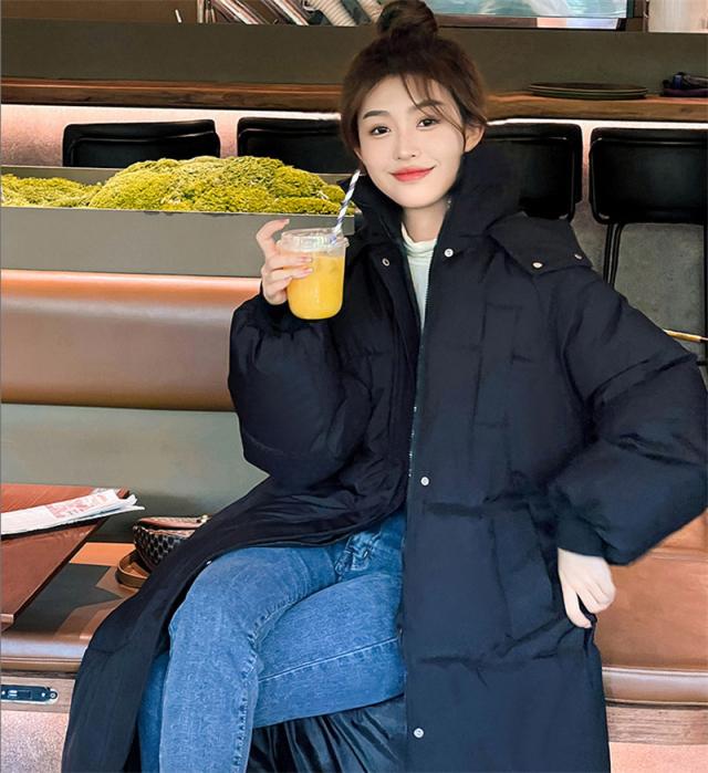 フード付きのレディースダウンコートです、フードを被った時の顔回りの暖かさもプラスされます。雨や雪の日でも大活躍です。