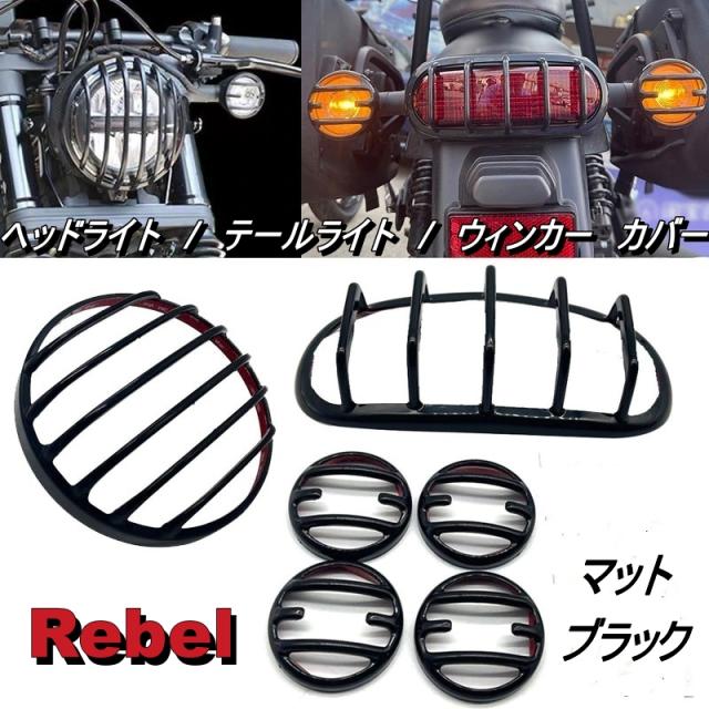 ホンダ レブル 250 / 500 / 1100 適合 ヘッドライト / テールライト / ウインカー カバー フルセット マットブラック ガード カスタム ドレスアップ