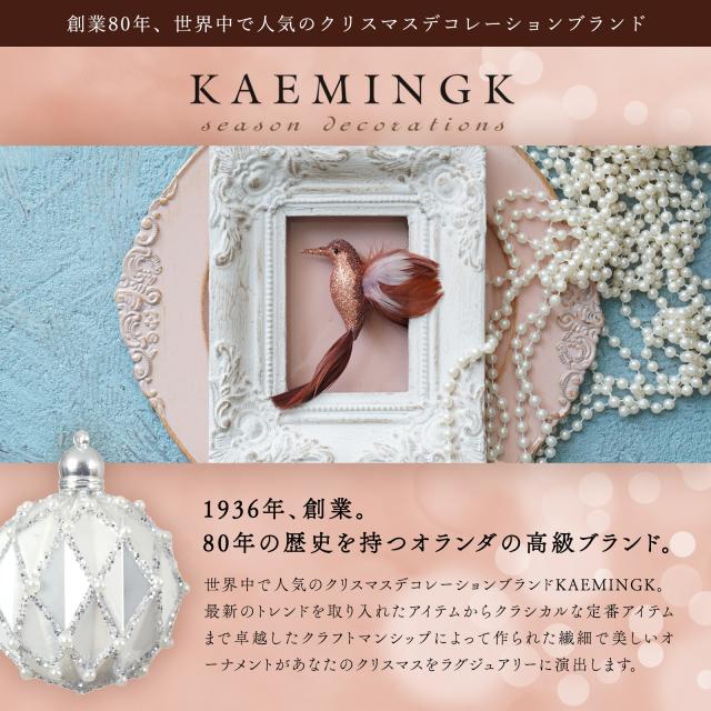 1936年、創業。80年の歴史を持つ高級ブランド。世界中で人気のクリスマスデコレーションブランドKAEMINGK。 最新のトレンドを取り入れたアイテムからクラシカルな定番アイテムまで卓越したクラフトマンシップによって作られた繊細で美しいオーナメントがあなたのクリスマスをラグジュアリーに演出いたします。 |