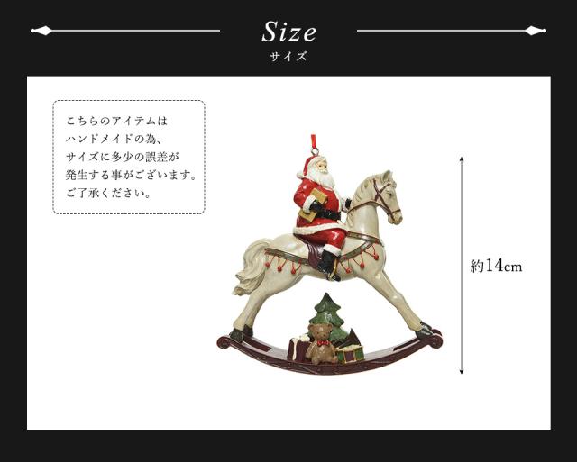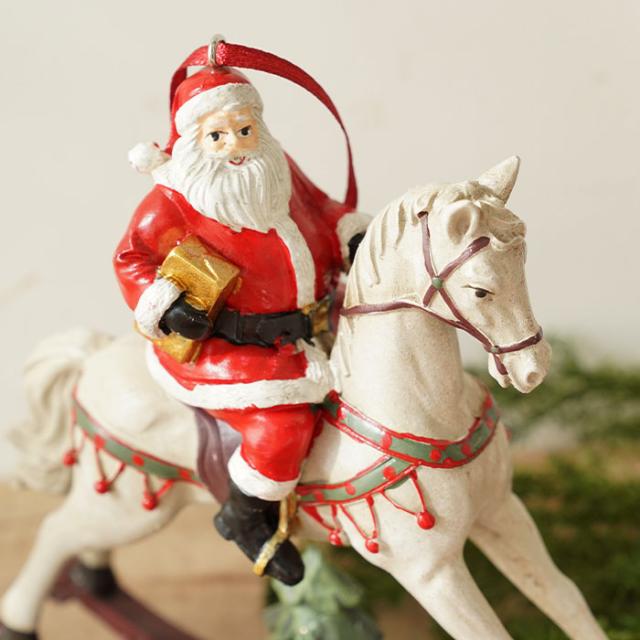 ロッキングホースに乗ったサンタクロースのオーナメントです。
