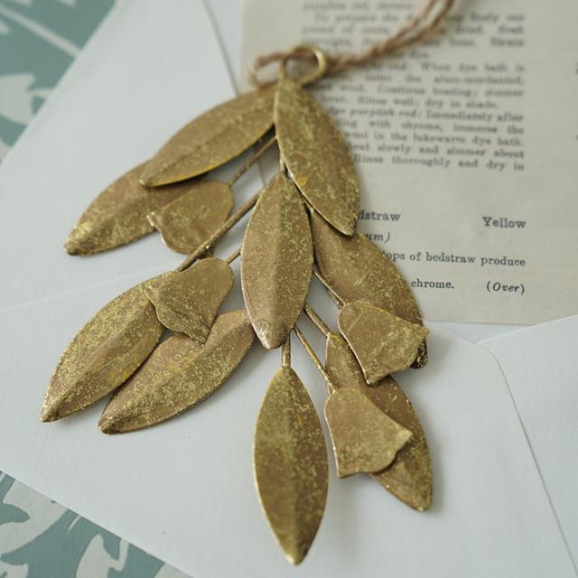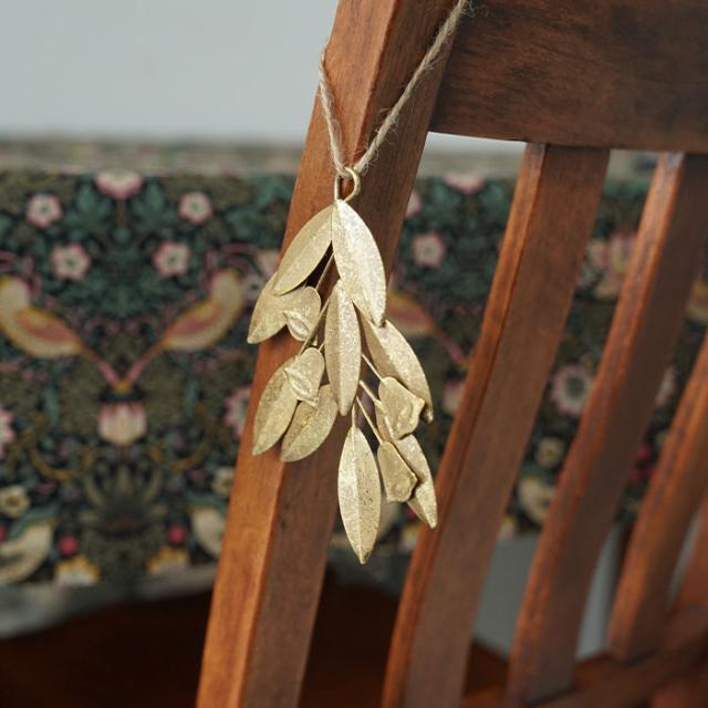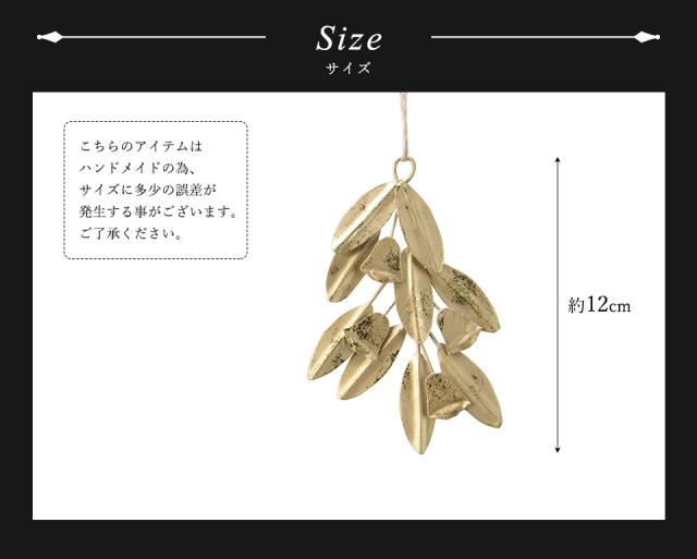 ★クリスマスツリーに大人の華やかさを添えるリーフオーナメント。上品に窄んだ枝に大きな葉が付いたデザインです。 明るめのゴールドにアンティーク調の塗装が施されていて、まるで長い歳月を経てきたような味わい深い雰囲気が魅力です。 垂れ下がった葉が優雅な広がりを見せる上品なデザインに仕上がっています。 季節を問わないデザインなので、クリスマスシーズン以外でも日常のインテリアとしてお楽しみいただけます。 サイズは高さが約12cmです。 |