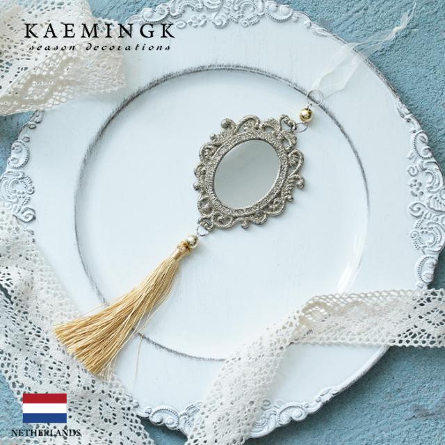 クリスマスツリー 飾り オーナメント 北欧 KAEMINGK レトロ ゴールドミラータッセル クラシカル タッセル付き 鏡 ゴールド 楕円 [1]