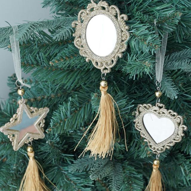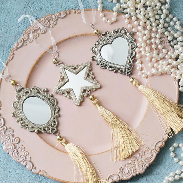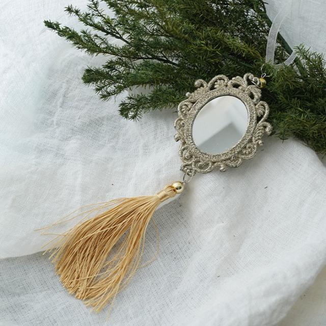 アンティーク調の雰囲気がたまらなくおしゃれな楕円型のタッセルミラーオーナメントです。