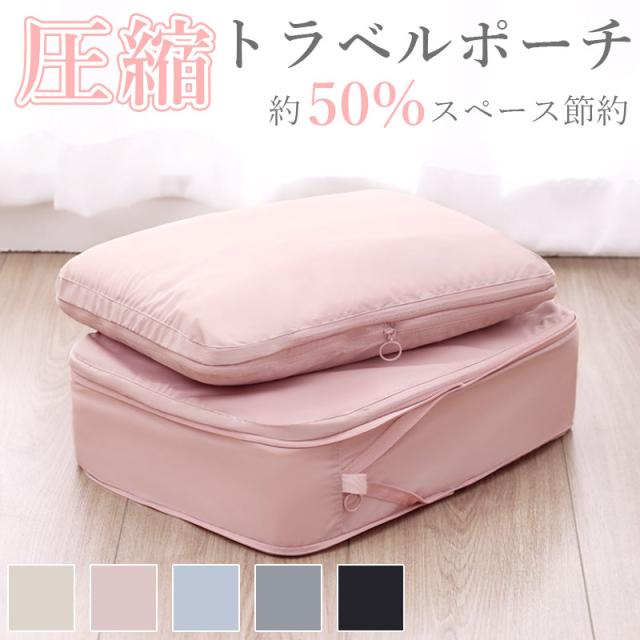 圧縮 トラベル ポーチ 1点 衣類スペース 50% 節約 旅行 収納ポーチ トラベルポーチ 圧縮袋 軽量 出張 旅行 仕分け 簡単 ファスナー シンプル おしゃれ トラベルバッグ パッキング 整理 衣類 圧縮袋 スーツケース 圧縮ポーチ