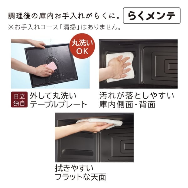 お手入れ簡単、27Lワイド&フラット庫内オーブンレンジ